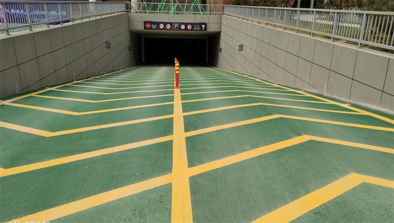 3、待抗压层干燥后,以喷涂方式施工面层,利用巨大比表面积达到防滑效果。本层结构耐磨,表面粗糙,均匀,不会造成车辆进出时的震动。